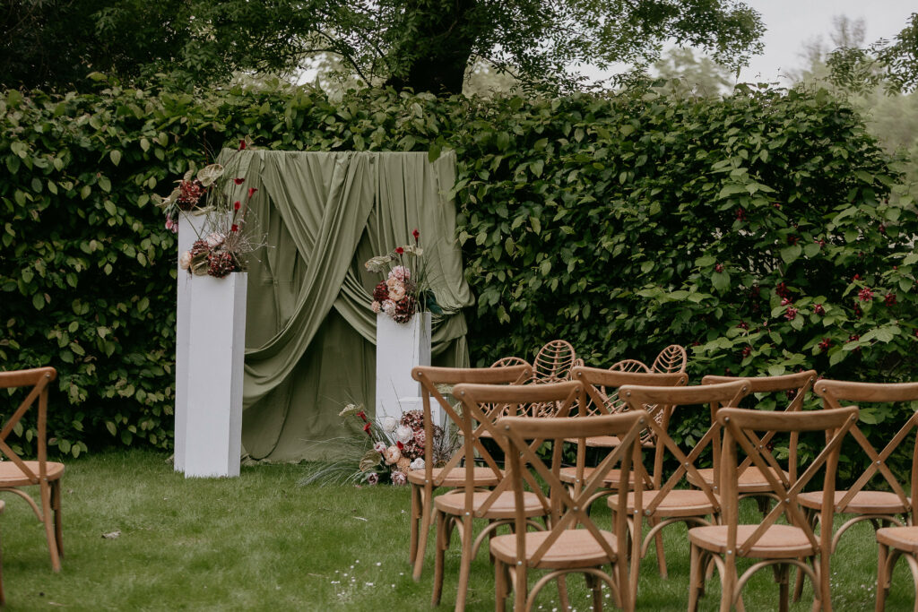 • Mobilier inclus : tables rondes ou rectangulaires et chaises en bois cross-back, pour une ambiance chaleureuse et raffinée